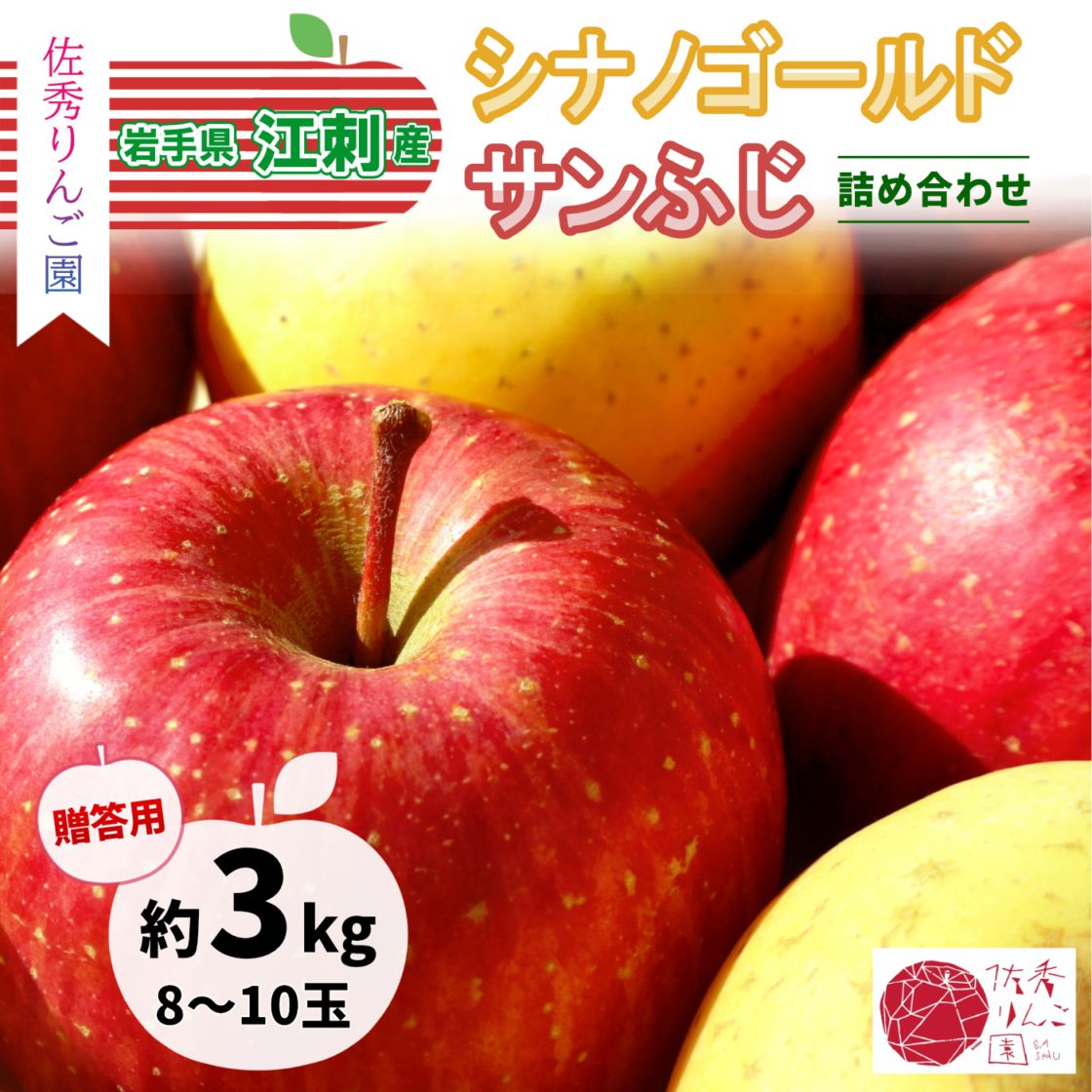 佐秀りんご園 サンふじ/シナノゴールド詰め合わせ 3kg 8~10玉 江刺産りんご 【11月中旬から順次発送】