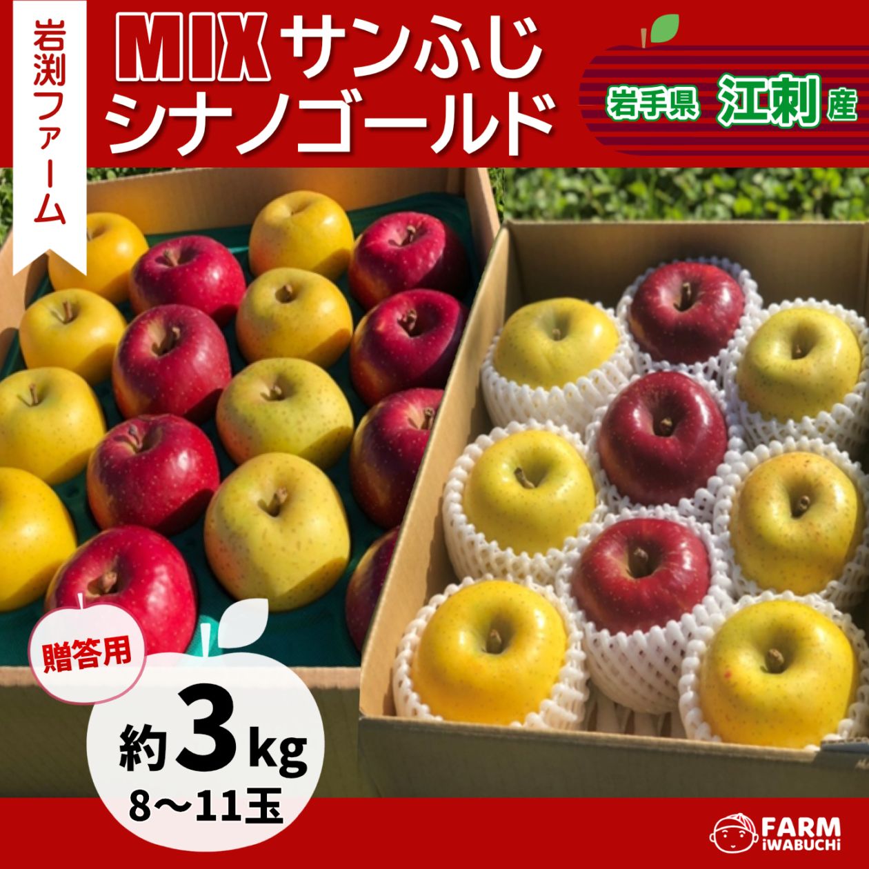 岩渕ファーム サンふじ/シナノゴールド詰め合わせ 3kg 8~11玉 江刺産りんご 【11月中旬から順次発送】