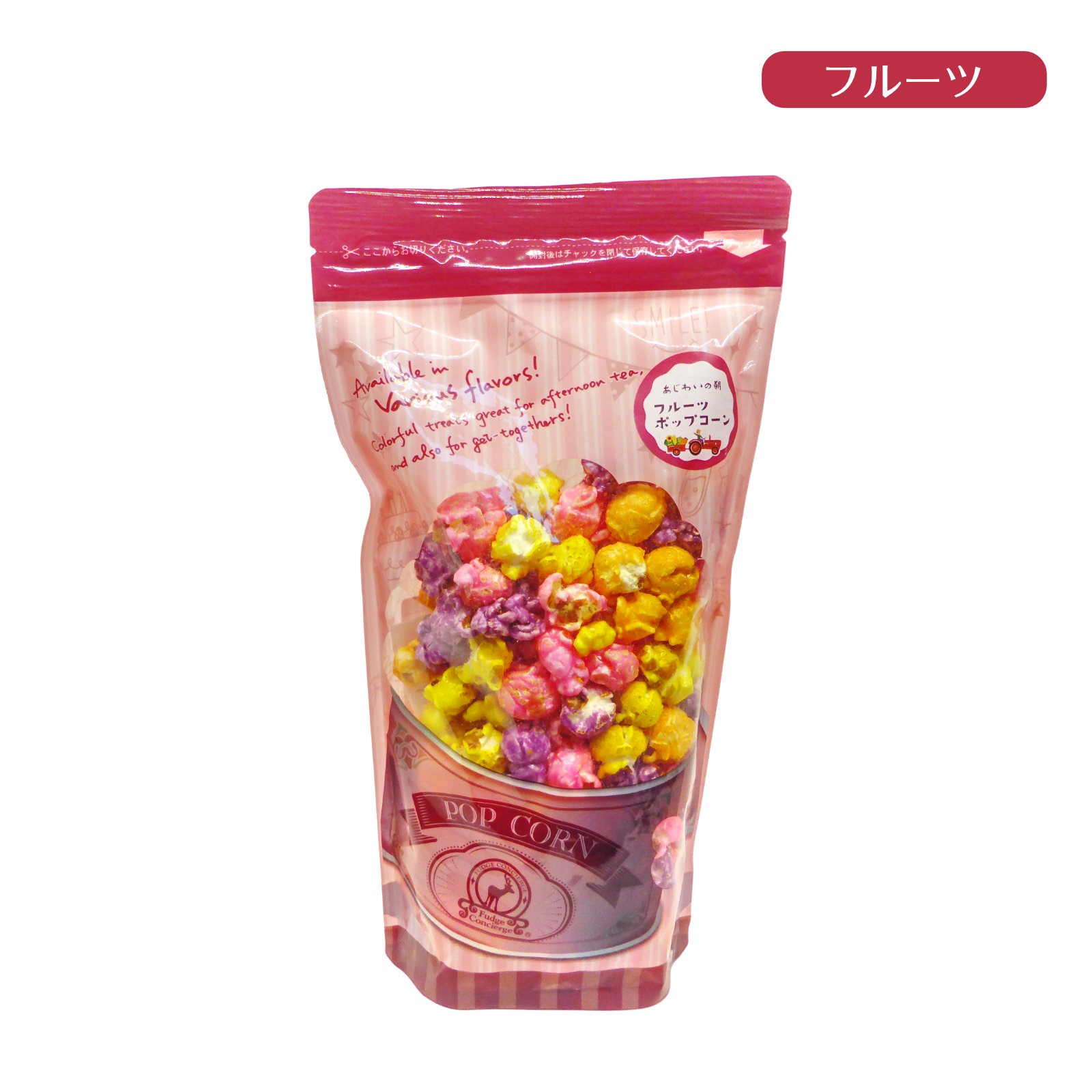 | レモン・オレンジ・イチゴ・グレープの4種類がある、カラフルな彩りが可愛いポップコーンです。 |
