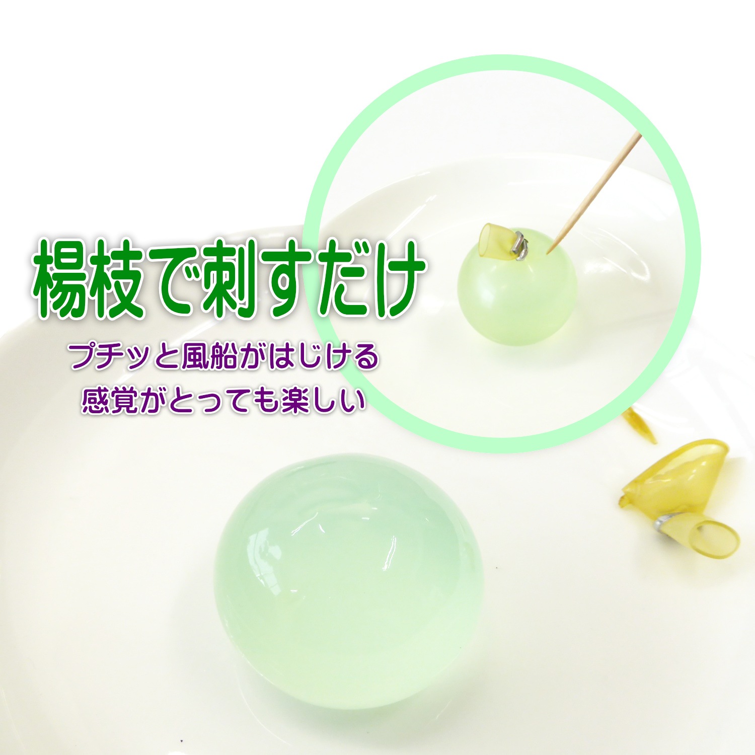 (つまみの部分を持ちながらだと刺しやすいです。) 1か所だけプチと刺すと、風船が外れます。