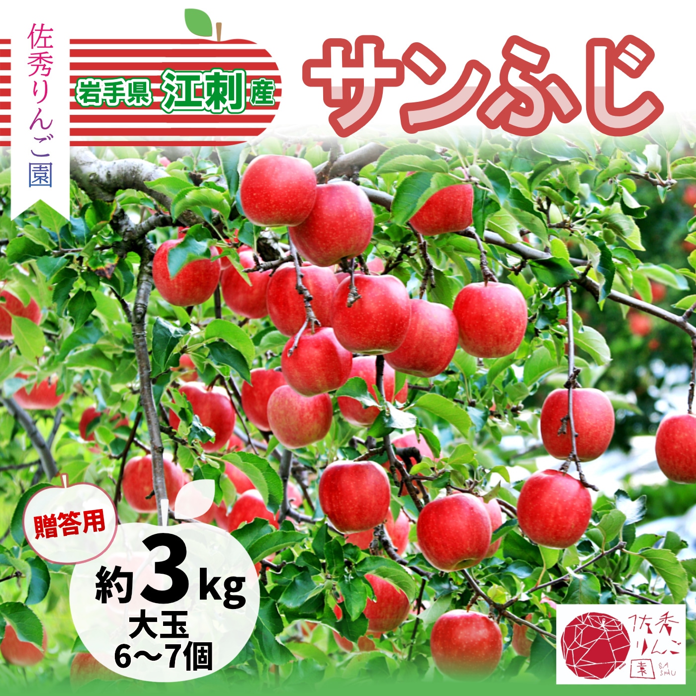 佐秀りんご園 サンふじ 3kg 大玉6~7玉 江刺産りんご 【12月上~中旬順次発送】